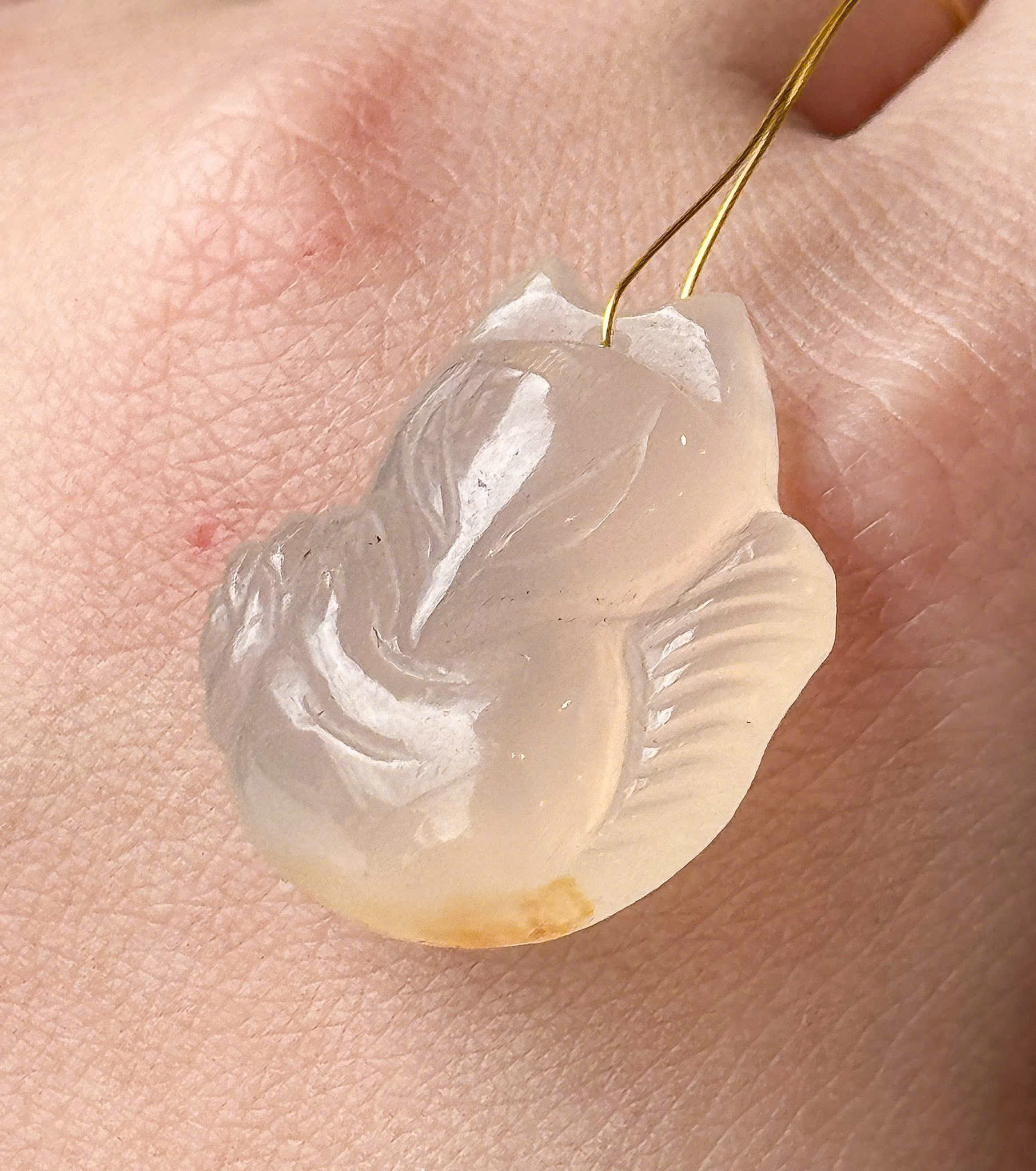 Chiếc Hồ Ly Bạch Nguyệt Quang được chế tác từ mã não tự nhiên, trong trẻo như ánh trăng thuần khiết. Đây không chỉ là một món trang sức phong thủy hộ thân, mà còn là mảnh ký ức thanh khiết, niềm an ủi dịu dàng dành cho chủ nhân hữu duyên.